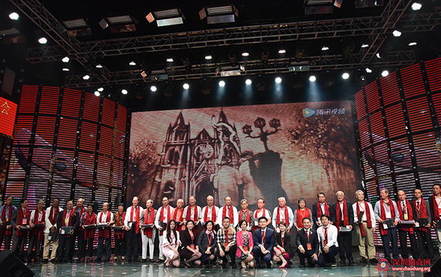 深圳市汕头澄海商会常务副会长谢泽鹏先生带领理事会成员:深圳市汕头澄海商会副会长、我会理事蔡淳林(前排右二),深圳市汕头澄海商会副秘书长、我会副秘书长陈媛(前排中),深圳市汕头澄海商会理事、我会理事潘琳琼(前排右三)等代表年轻一辈,上台为到场65岁以上嘉宾、会员送上温情礼物和祝福