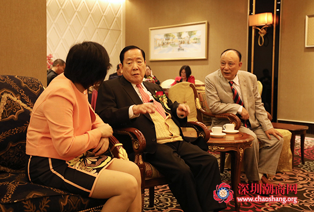 澳门潮属社团总会创会主席许世元(中)与下载安装 创会会长吴开松(右)交谈
