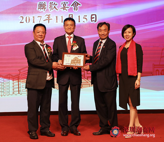 澳门潮属社团总会副主席陈维炽向下载安装 代表、副会长兼秘书长黄梓琪赠纪念品