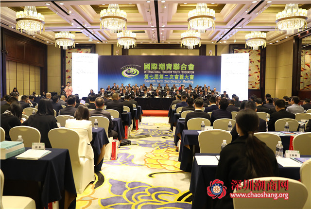 上午召开国际潮青联合会第七届第二次会董大会,图为会议现场