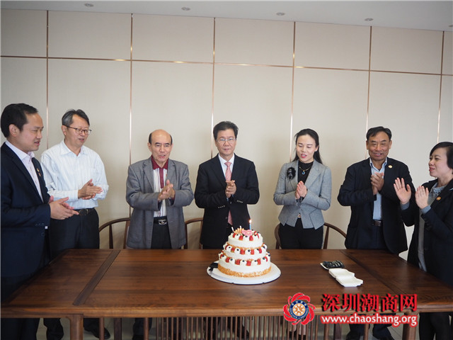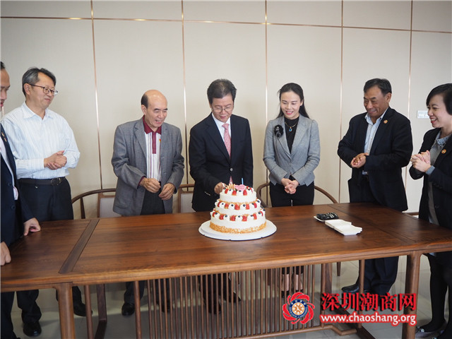 11月24日是周桃林名誉会长的生日,商会秘书处值此送上书法对联、鲜花及生日蛋糕祝福。书法对联内容是:“ 云锦德霖开泰运,天章蟠桃赐长春”。