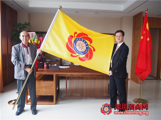为感谢周桃林名誉会长一直以来对商会的支持和奉献,邓东书记代表商会为周桃林名誉会长授会旗、牌匾,黄梓琪秘书长为周桃林名誉会长赠送商会纪念品。