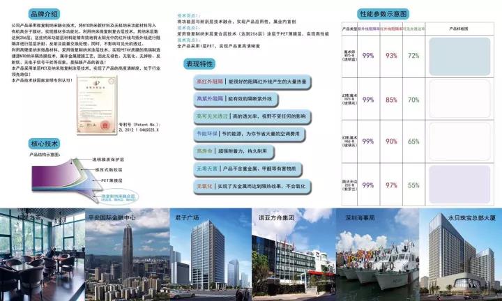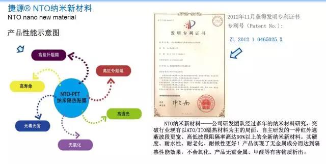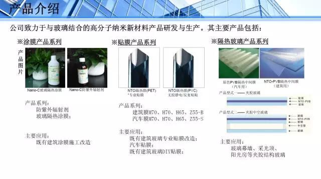拥有独立自主知识产权的新材料发明专利以及多项实用新型专利。公司现阶段主要研发纳米应用技术所生产的新型纳米材料、玻璃隔热涂膜、隔热PVB中间膜、隔热玻璃以及环保纳米应用解决方案等。