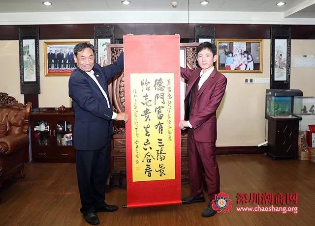 走访期间,黄梓琪秘书长代表商会为吴怡德副会长赠送一幅书法作品作为生日贺礼。书法对联内容是:“德门富有三阳景,怡志贵生六合春”。