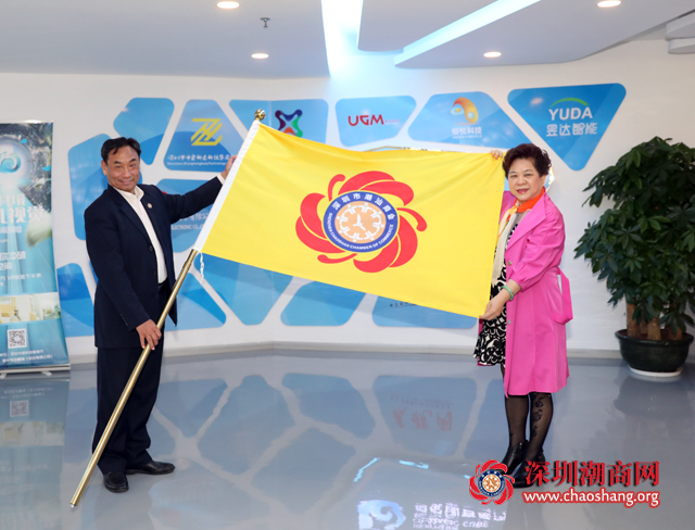 黄梓琪秘书长(左)代表商会为吴淑音副会长(右)授旗