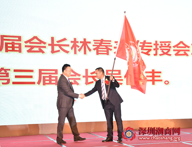 第二届会长林春来传授会旗给第三届会长吴俊丰
