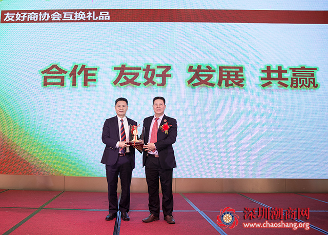 黄育宏驻会会长代表下载安装 与佛山市揭阳商会代表互赠礼品