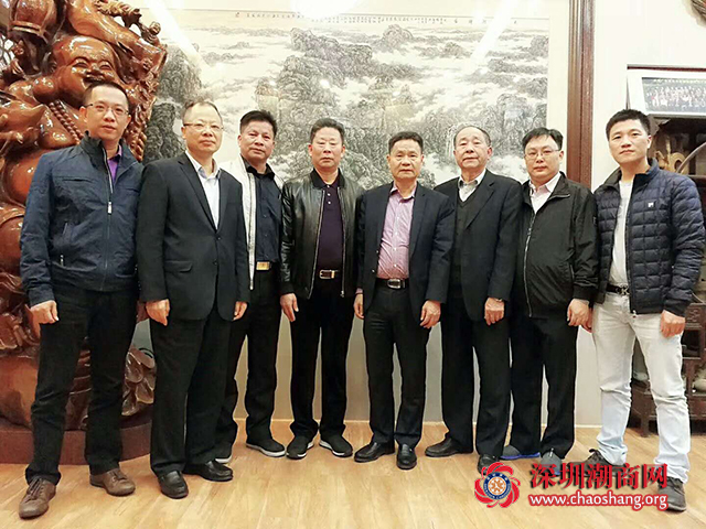 下载安装 驻会会长黄育宏(右四)下载安装 常委、副会长何奕鹏(左二)拜访佛山市潮汕商会,得到佛山市潮汕商会会长黄胪生(左四)热情接待