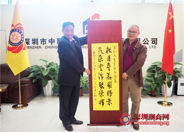 黄梓琪秘书长代表商会向黄秋炎副会长送对联