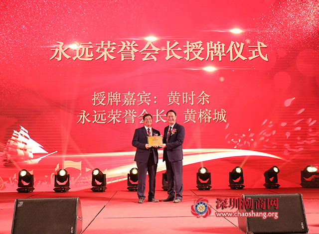 黄时余会长为深圳市揭阳商会第三届新聘的荣誉会长授牌