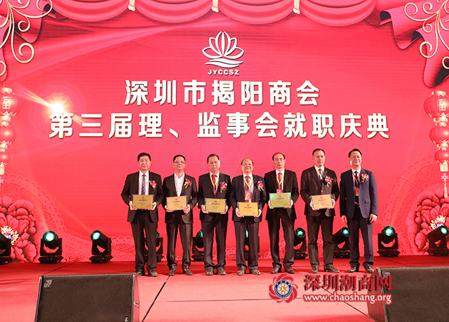会上进行了深圳市揭阳商会第三届理事会会长、永远荣誉会长、驻会会长,深圳市揭阳商会第三届监事会监事长、副监事长、监事,新任荣誉会长、名誉会长、常务副会长、副会长、理事、会员、秘书长、常务副秘书长以及青联新任常务副主席、副主席等的授牌。