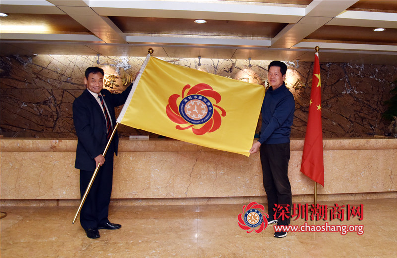 黄梓琪秘书长(左)代表商会向李汉发副会长(右)送会旗