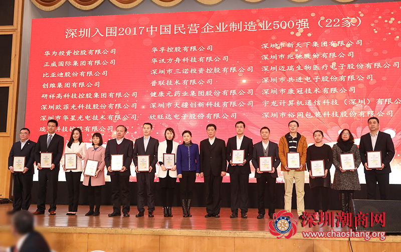会议举行了中国民营企业500强获奖企业颁牌仪式,并为市工商联增补执委、新入会青委会成员、团体会员企业授牌。我会名誉会长单位深圳市三诺投资控股有限公司荣获2017中国民营企业制造业500强。深圳市潮汕青年商会、深圳市揭阳商会等成为新入会团体会员。