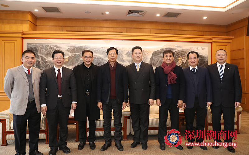 深圳市人大副主任乔家华(右三)、深圳市工商联(总商会)主席(会长)陈志列(右二)与我会吴木棠会长(左三)、周南常务副会长(左二)、许建洲副会长(左一)合影