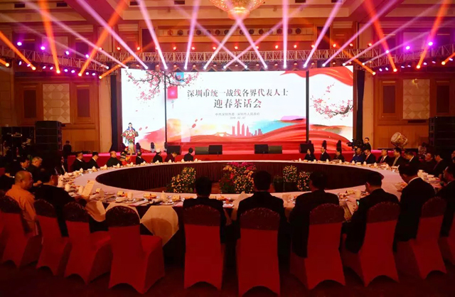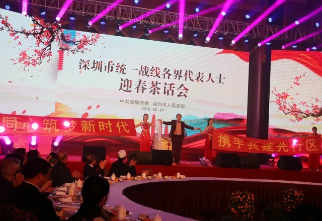 2018年2月7日下午,深圳市统一战线各界代表人士迎春茶话会在五洲宾馆隆重举行,200多名全市统一战线各界精英云集,互致新春的祝福,共商新年发展大计。受市委书记王伟中的委托,市委副书记李华楠代表市委市政府致辞,市委常委、统战部部长林洁主持茶话会。副市长高自民,市政协副主席王璞出席茶话会。