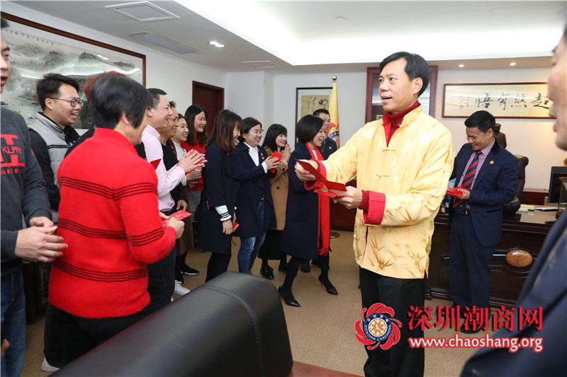 副会长、深圳市潮商股权投资基金有限公司总经理方端向大家派发新春利是
