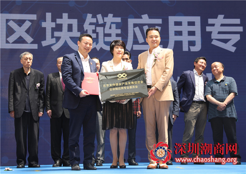 雄促会副会长兼秘书长弥雪(中)为国盾区块链授牌