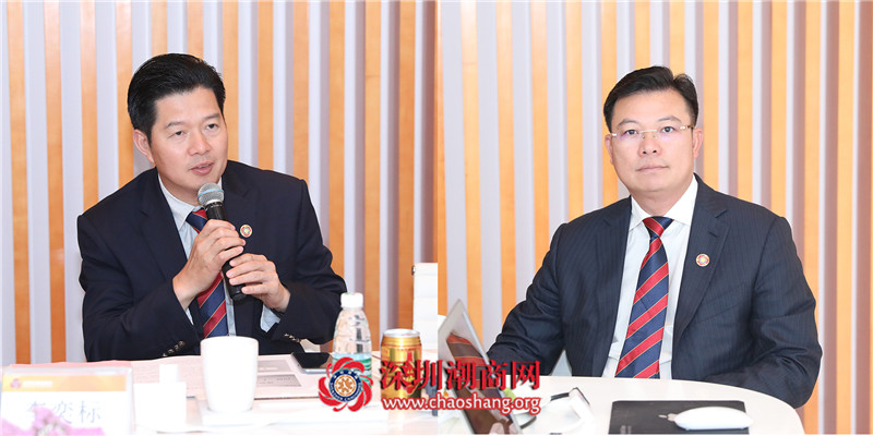 黄梓琪秘书长宣读了《商会行政区联络处管理规定》(暂定),《品牌推广部新闻资讯发布规则》(暂定),并汇报了秘书处近期的工作。他说,“潮客一家亲”联谊会的举办时间将推迟至八九月份。为配合“6·30广东扶贫济困日”活动,商会将与深圳市华侨公益基金会发起“侨心潮爱”众筹项目。此外,商会将于5月1日举办升旗仪式,谢元硕轮值副会长单位将于5月3日举办2018年度区块链技术应用研讨会、健康工作委员会将于5月8日举办健康服务活动——走进医丞堂,期待常委会成员的出席。