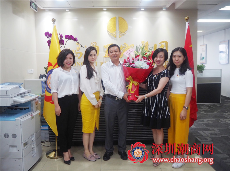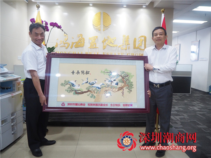 走访期间,黄梓琪秘书长代表商会向林振洪副会长送上会旗和纪念品,并送上一幅潮绣珍品作为生日贺礼和生日鲜花表示祝贺。