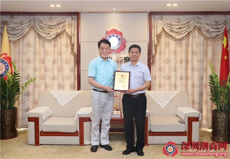 黄育宏驻会会长代表商会为王宋大荣誉会长颁发聘任牌匾
