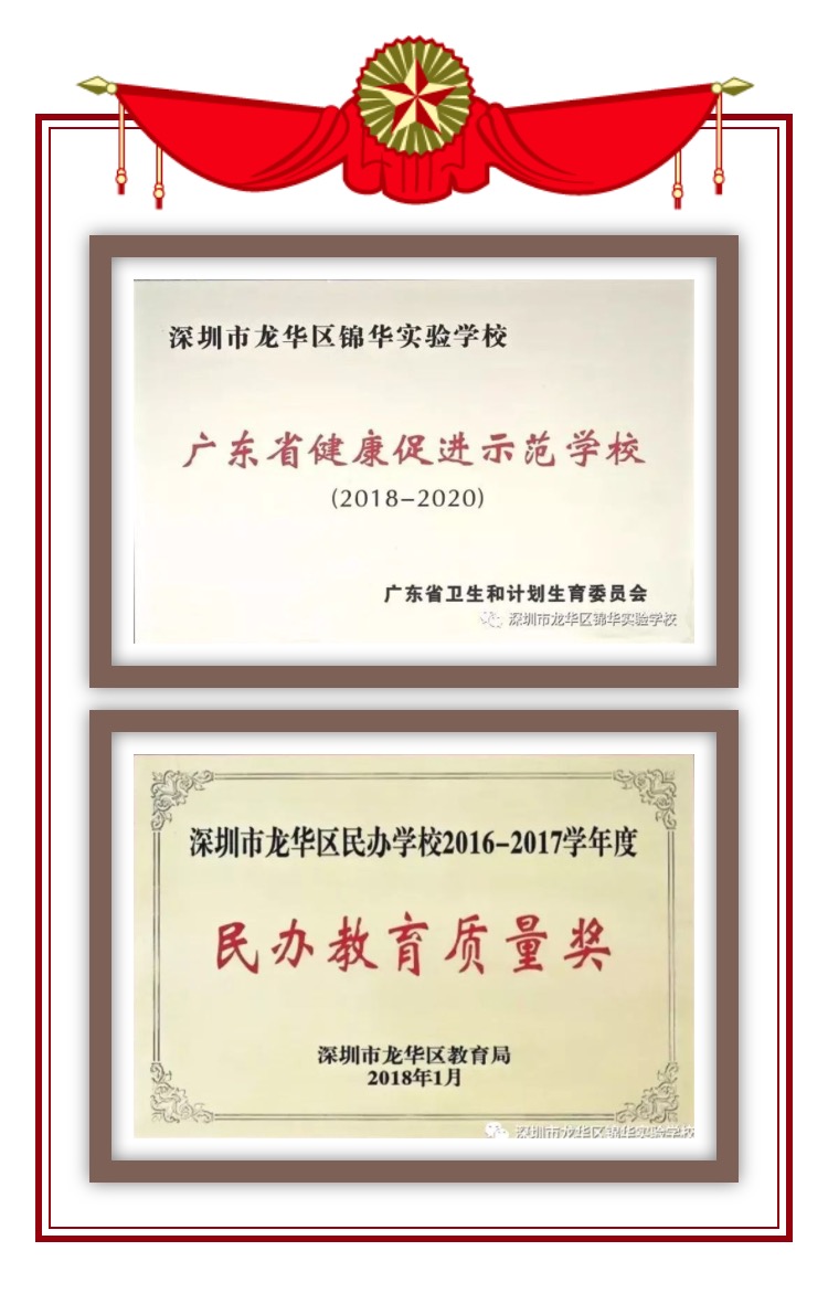热烈祝贺常务副会长林锦乙单位深圳市龙华区锦华实验学校再次获得广东省健康促进示范学校、龙华区民办教育质量奖荣誉!