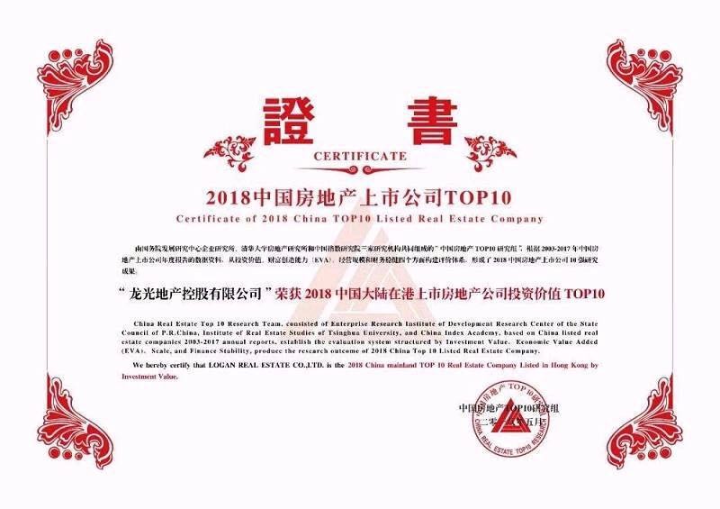 2018年5月31日,“2018中国房地产上市公司成果发布会暨第十六届中国房地产投融资大会”在北京隆重举行。会上,我会荣誉会长纪海鹏单位龙光地产凭借业内领先的综合实力、出色的业绩表现以及稳健的财务战略荣列“2018中国大陆在港上市房地产投资价值 TOP10”第三位,仅次于恒大、金茂,再次反映出业界对龙光作为大湾区龙头、核心标的和首选股的高度认可。