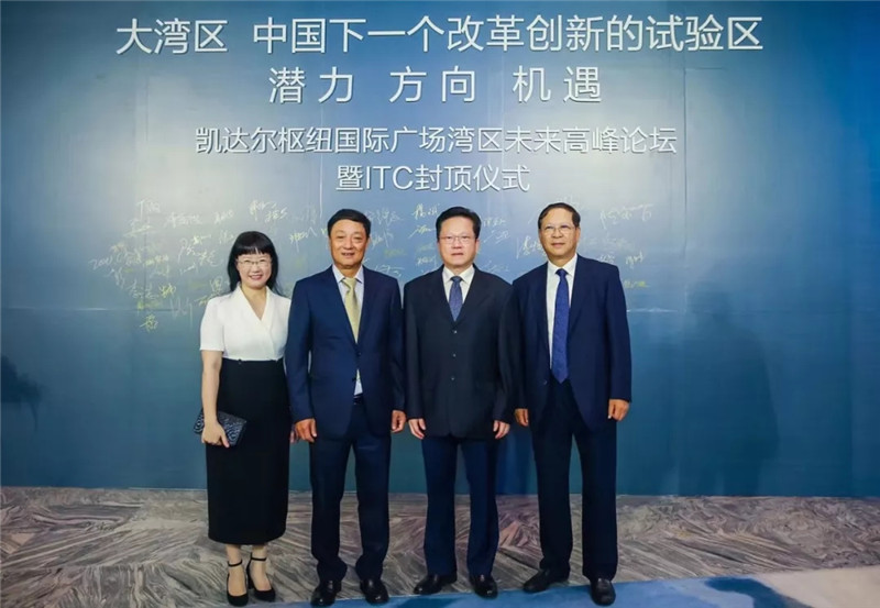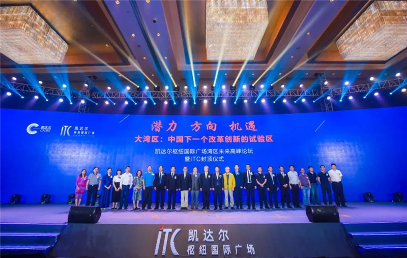 2018年6月8日, 凯达尔集团主办的湾区未来高峰论坛暨封顶仪式在广州南丰朗豪酒店隆重举行。来自全国各地的近500位嘉宾齐聚一堂,围绕“潜力·方向·机遇:大湾区——中国下一个改革创新的试验区”,通过主题演讲、论坛对话等形式,共同探讨大湾区发展大势,就凯达尔枢纽国际广场作为粤港澳大湾区枢纽明星的发展机遇和巨大潜力作出多维分析,为与会人员打开了审视粤港澳大湾区发展的新视角。