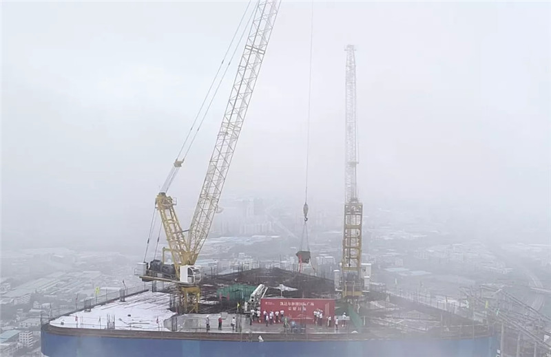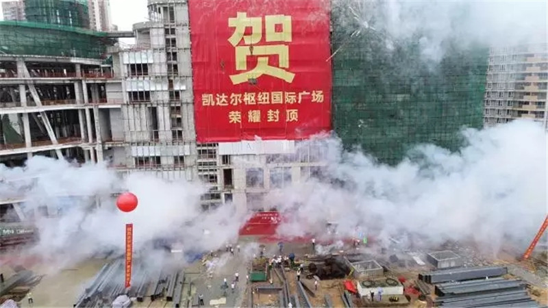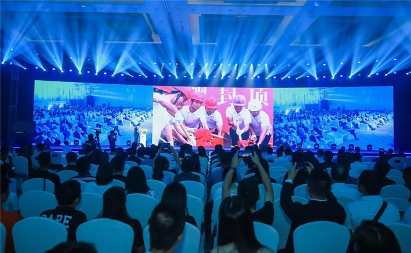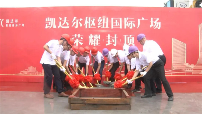 现场500多位嘉宾共同见证了封顶仪式的荣耀时刻。在工地现场,各参建单位领导和施工人员挥舞金铲一起用铁锹浇筑下最后一方混凝土;在活动会场,与会的重量级嘉宾将象征璀璨希望的金沙倒入启动台,共同标志着凯达尔枢纽国际广场封顶仪式圆满完成。