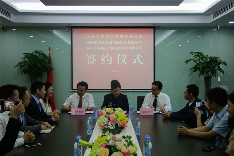 2018年4月3日下午,泰隆金融控股集团、马成商业投资控股集团,与光大兴陇信托有限责任公司战略合作签约仪式在泰隆总部隆重举行。下载安装 副会长、泰隆金融控股集团董事长吴思兵、总裁李俊,与光大兴陇信托有限责任公司深圳区域中心总经理李建玲共同签署战略合作协议,为彼此的业务发展揭开一个新的篇章。