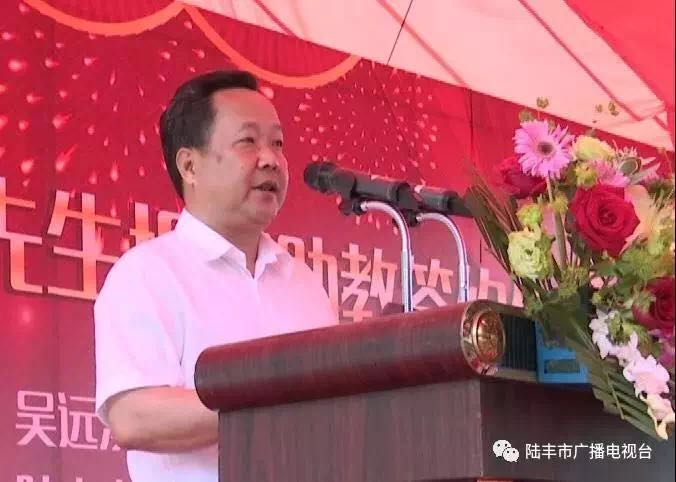 仪式上,陆丰市委书记邬郁敏代表市委、市政府对吴远溪、吴远港先生捐资支持陆丰教育事业发展表示衷心的感谢。他指出,近年来,全市教育事业呈现蓬勃发展的良好态势,既得益于国家和省教育普惠政策的实施,也倾注了全市各级各部门、教育工作者的共同努力,更离不开社会各界爱心人士的关心支持和无私帮助。