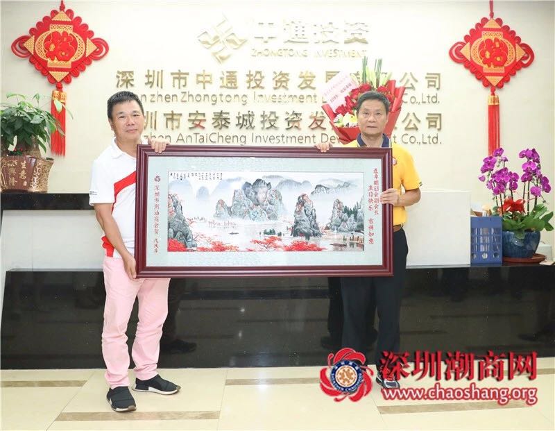 2018年6月8日下午,黄育宏驻会会长带队走访创会副会长、深圳市中通投资发展有限公司主席连卓明,提前为他送上生日祝福。常务副会长兼秘书长黄梓琪,会长助理谢和治,常务副秘书长吴键,常务副秘书长兼会员发展服务中心主任陈媛,会员发展服务中心副主任洪丽珠等参加走访活动。