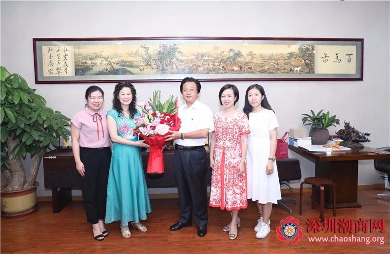 走访期间,黄梓琪秘书长代表商会向吴思兵副会长送上一幅潮绣珍品作为生日贺礼和鲜花表示祝贺。