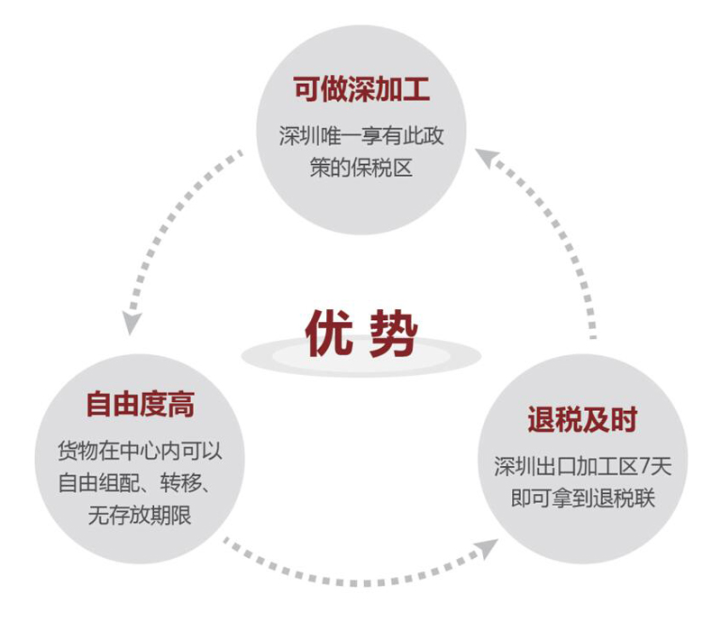 1.可做深加工,是深圳唯一享有此政策的保税区;