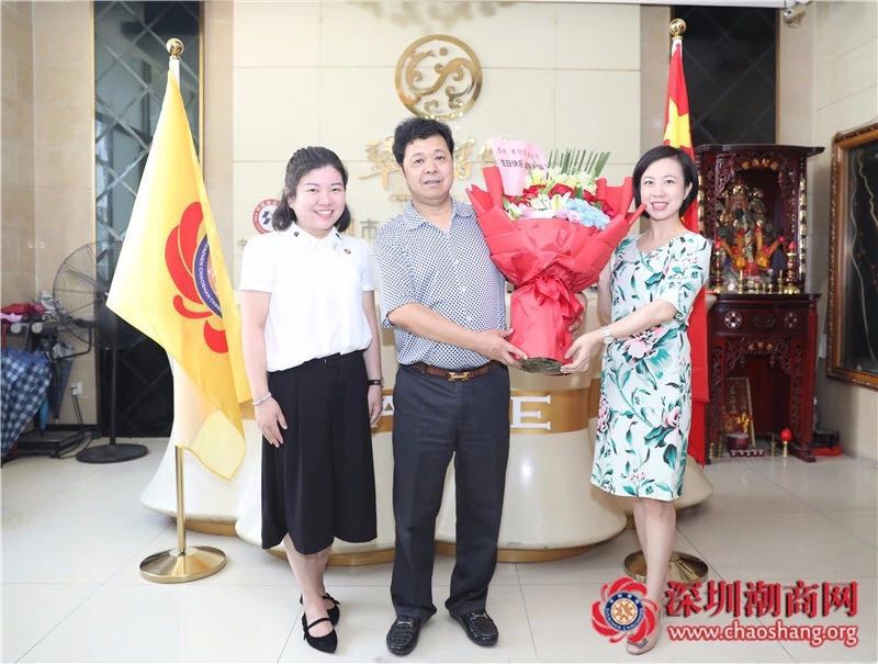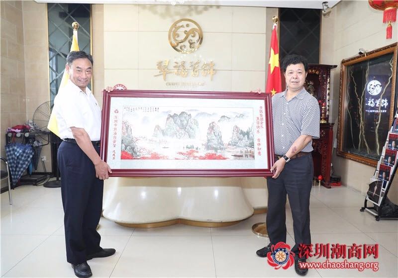 本周六(6月30日)是黄钦坚副会长的生日,黄梓琪秘书长代表商会向黄钦坚副会长送上会旗和纪念品,并送上一幅潮绣珍品作为生日贺礼和鲜花表示祝贺。