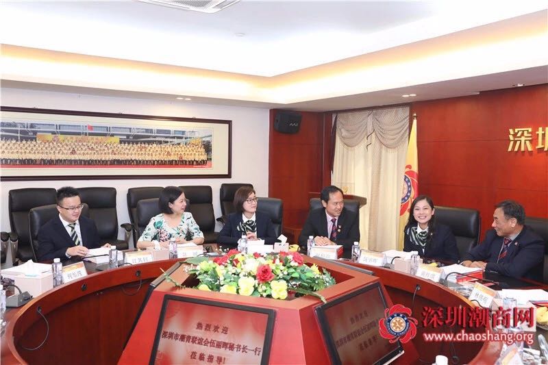 2018年7月4日上午,深圳市潮青联谊会(以下简称“深圳潮青会”)伍丽晖秘书长一行莅临商会交流。一同到访的有深圳潮青会副秘书长林伟明、郑梦婕,秘书邱泽标、江其钊、王晓莎。