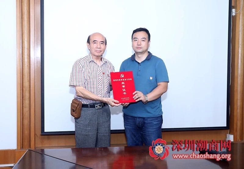 会上,吴开松创会会长向黄涛同志颁发“深圳市优秀党务工作者”奖杯,邓东书记向黄涛同志颁发“深圳市优秀党务工作者”荣誉证书。