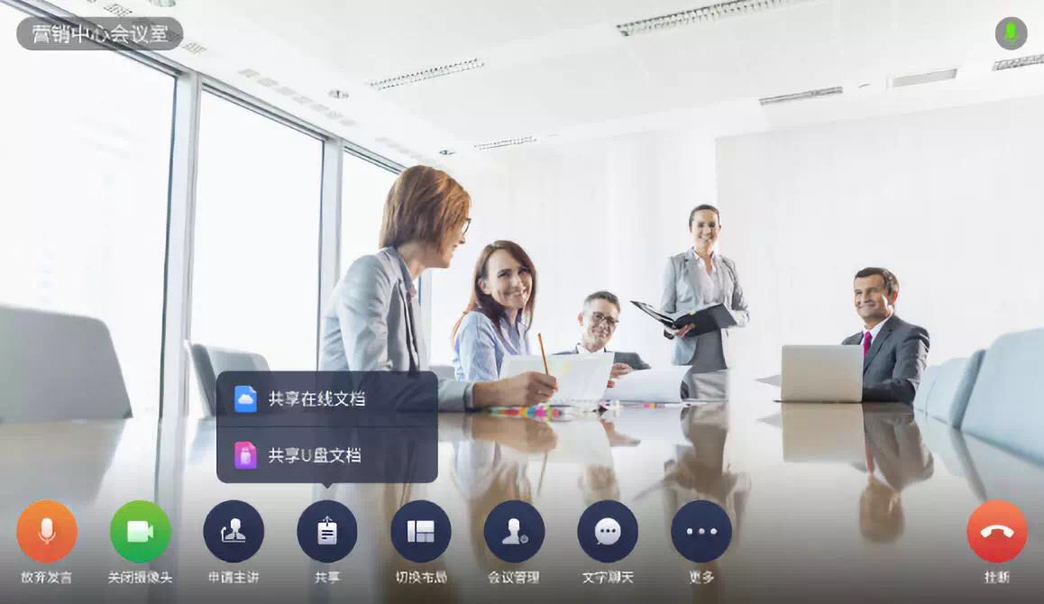 共享文档:除支持常规在线分享文档外,还支持直接插入U盘,共享U盘里多种格式的文档资料到会议中,同步展示给所有与会者观看,让共享更简单更灵活更具品质。