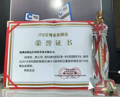 近日,2018第七届深圳国际智能交通与卫星导航位置服务展会在深圳国际会展中心盛大举行,并进行了“2018第六届中国智能交通建设推荐品牌”评选结果的揭晓和颁奖。凯达尔科技凭借在智能交通领域强大的技术实力及对交通事业所做出的突出贡献,成功斩获本次大奖,同时更是凭借城市动静态智慧交通一体化管理服务平台解决方案获组委会产品类最高奖ITS“金狮奖”。
