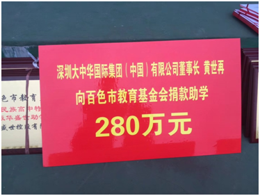 2017年12月,大中华国际集团向百色教育基金捐款280万元。
