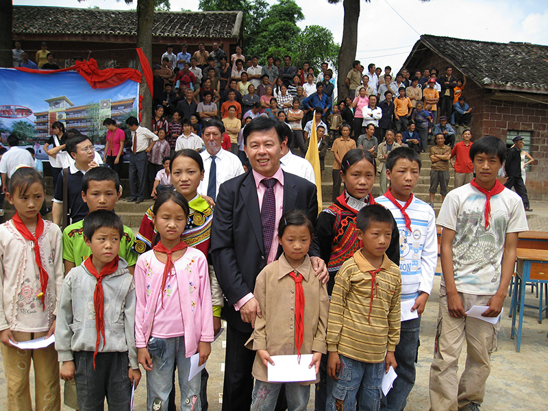 黄世再荣誉会长捐赠大凉山小学并与儿童合影