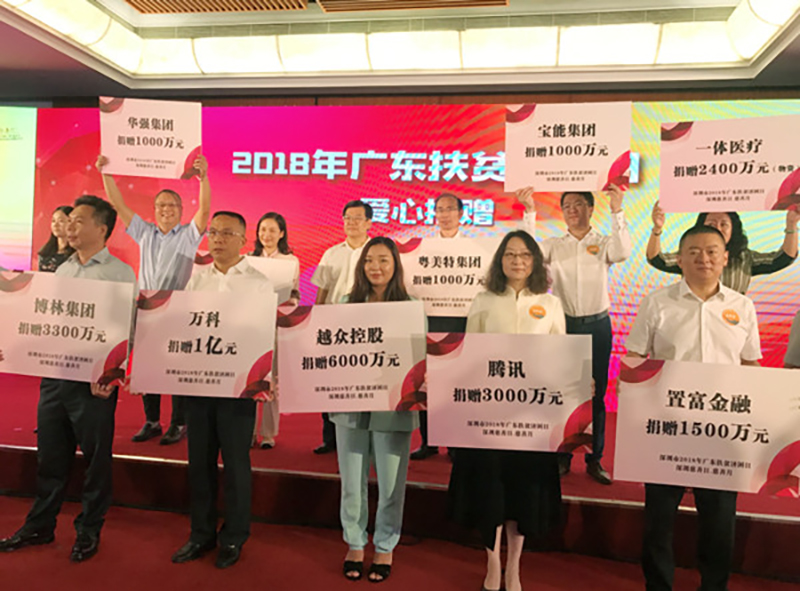 在2018年“广东扶贫济困日”暨“深圳慈善日慈善月”启动仪式当天,万科集团、腾讯公益慈善基金会、海王集团、粤美特集团等29家爱心企业在现场进行了举牌捐赠,许锦光董事长代表粤美特集团捐赠了1000万元的善款。