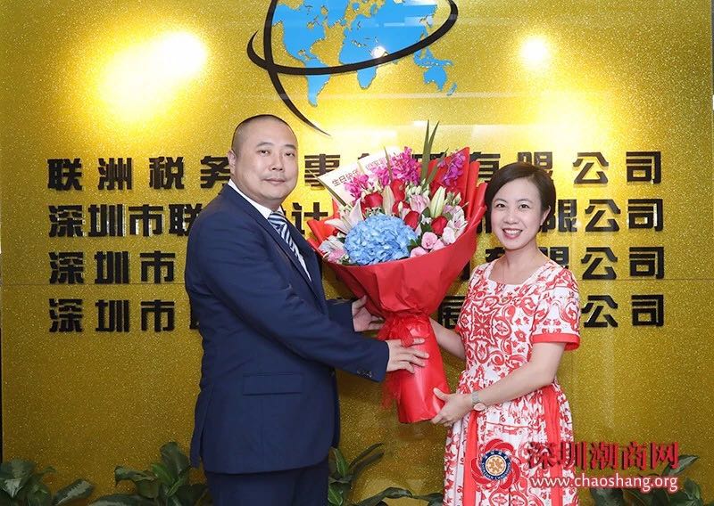 明天(7月25日)是许建洲副会长的生日,黄育宏驻会会长代表商会向许建洲副会长送上一幅潮绣珍品作为生日贺礼和鲜花表示祝贺。
