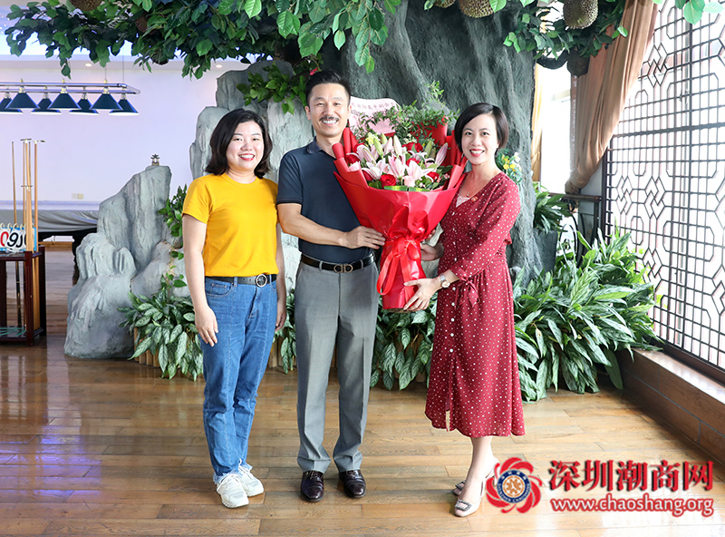 2018年8月9日下午,黄育宏驻会会长率领秘书处一行走访副会长、深圳市新浩投资发展有限公司总裁欧阳奕平先生,并提前为他庆祝生日。