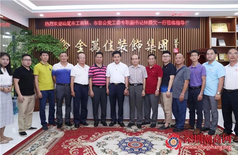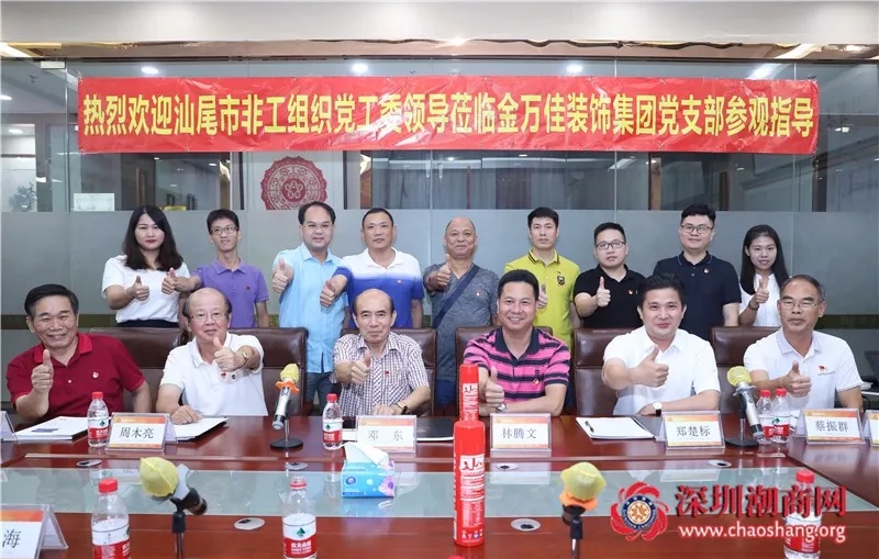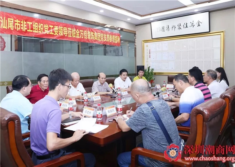 2018年8月30日,汕尾市工商联党组成员、市非公党工委专职副书记林腾文一行10余人莅临我会访问交流。下午,邓东书记等陪同林腾文副书记一行到党委下属党支部——深圳市金万佳装饰集团有限公司党支部参观交流。