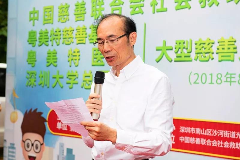 2018年8 月11日,深圳粤美特慈善基金会(筹建)携手深圳大学总医院、深圳南山区沙河街道光华街社区党委联合举办“关爱居民健康 慈善送医上门”义诊活动,把光华街社区工作站变成流动诊室,为居民送医上门。来自深圳大学总医院泌尿外科、肝胆外科和超声科的专家医护团队一对一耐心面诊,获得社区居民的好评。