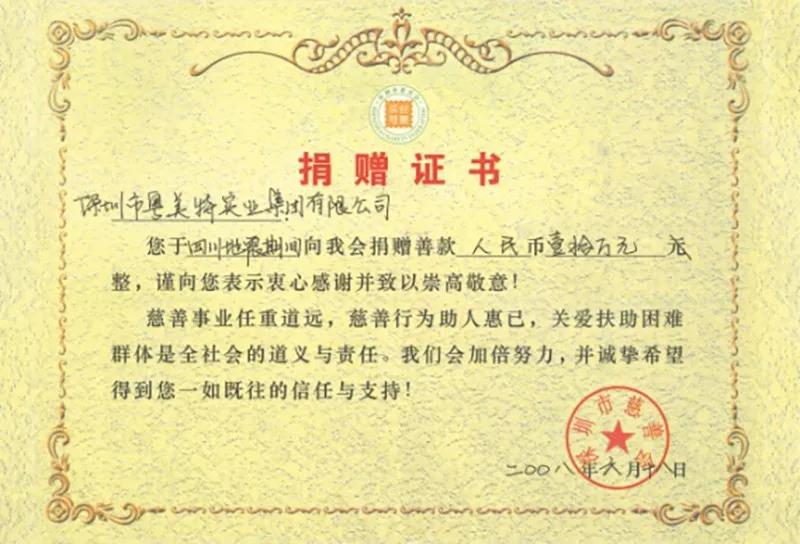 2008年,为四川地震捐赠爱心善款