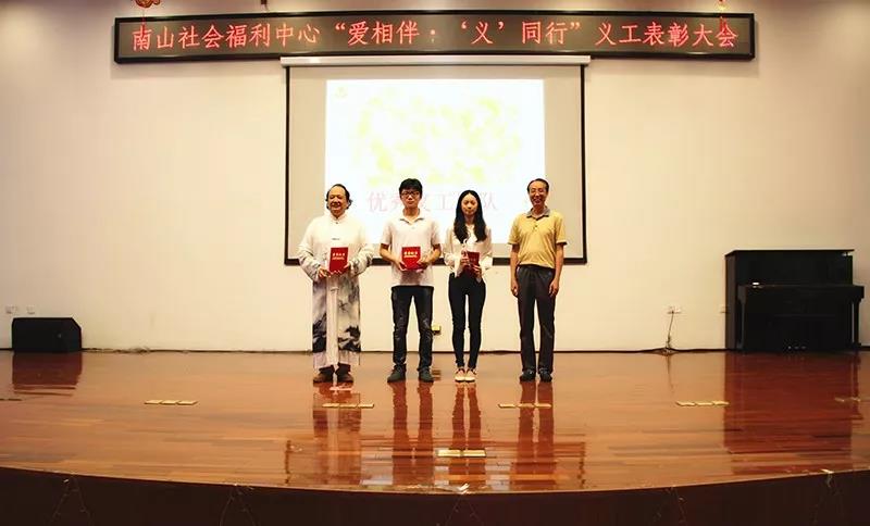 2018年5月,深圳市南山区社会福利中心召开2018年“爱相伴,‘义’同行”义工表彰大会,分别表彰了10个优秀义工团队、10位优秀义工骨干和16位优秀义工。粤美特集团荣获“优秀义工团队”荣誉证书,许莉琳女士作为企业代表,现场接受福利中心李梁坤主任的颁奖。