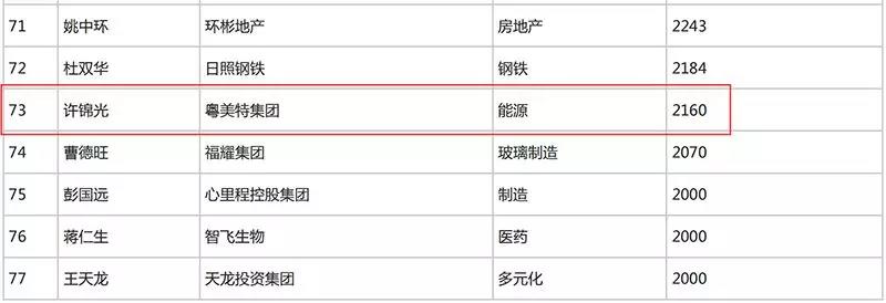 2018年8月,福布斯公布2018中国慈善榜,共100位企业家上榜,粤美特集团董事长许锦光入围榜单,以2160万元的现金捐赠总额位列第73名。