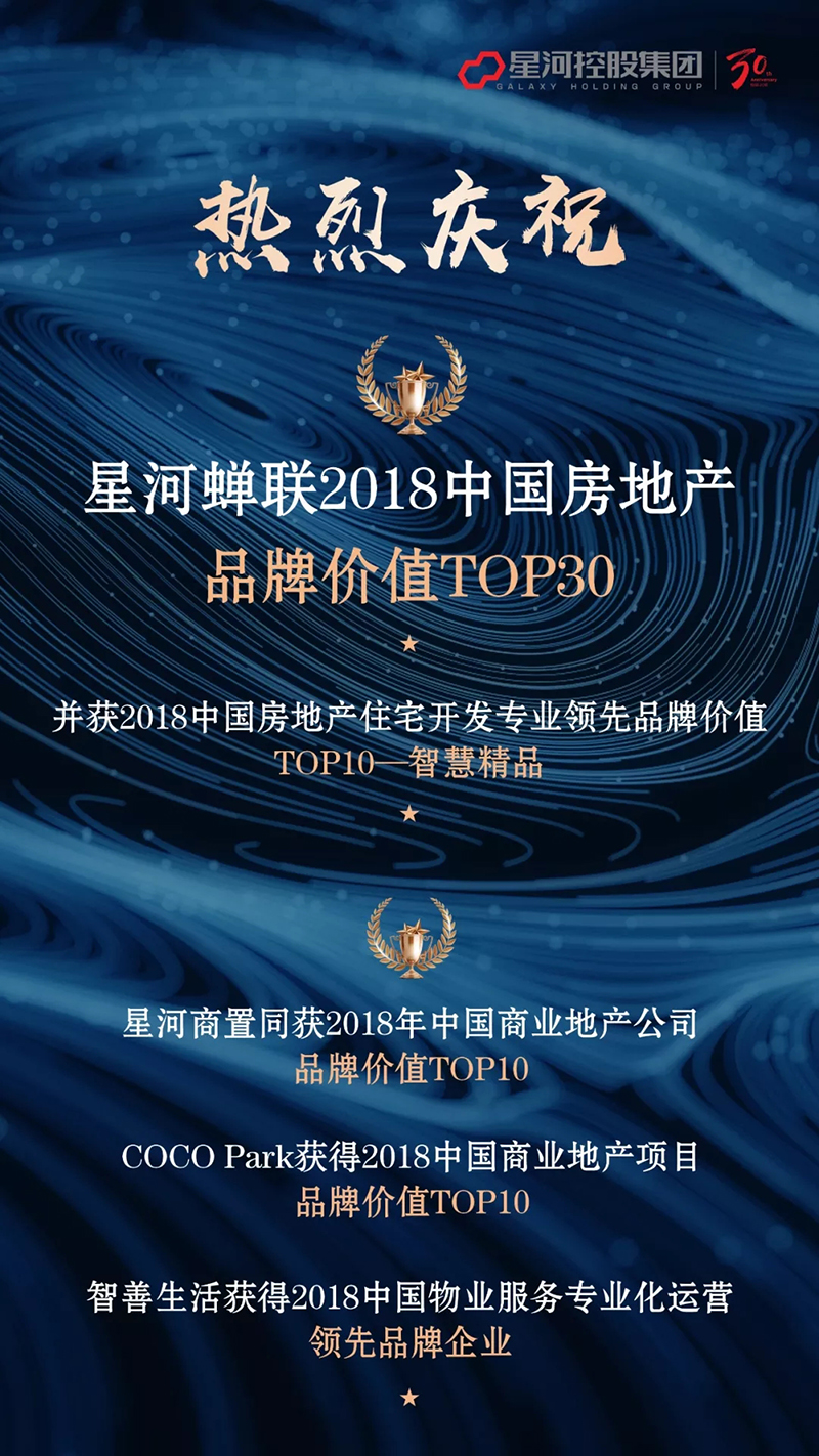 无独有偶,星河旗下商业管理公司星河商置(新三板代码:839819)荣膺“2018年中国商业地产公司品牌价值TOP10”;著名商业品牌“星河COCO Park”获得“2018中国商业地产项目品牌价值TOP10”;不仅如此,星河旗下物业管理公司星河智善生活(新三板代码:836397)同时获得“2018中国物业服务专业化运营领先品牌企业”大奖。