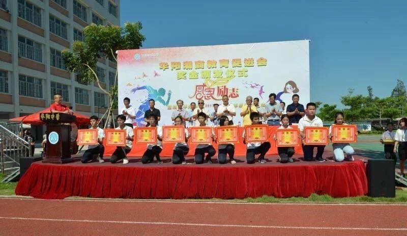 近年来,潮商华阳中学在全校师生共同努力下,办学质量不断提升,中考成绩节节攀升,为表彰先进,激励潮商华阳中学师生奋发进取,华阳潮商教育促进会斥资567716元,奖励优秀学生干部、三好学生、优秀团员、七八年级尖子生、小升初中考成绩突出的毕业生和九年级毕业班教师,并慰问全校教师。